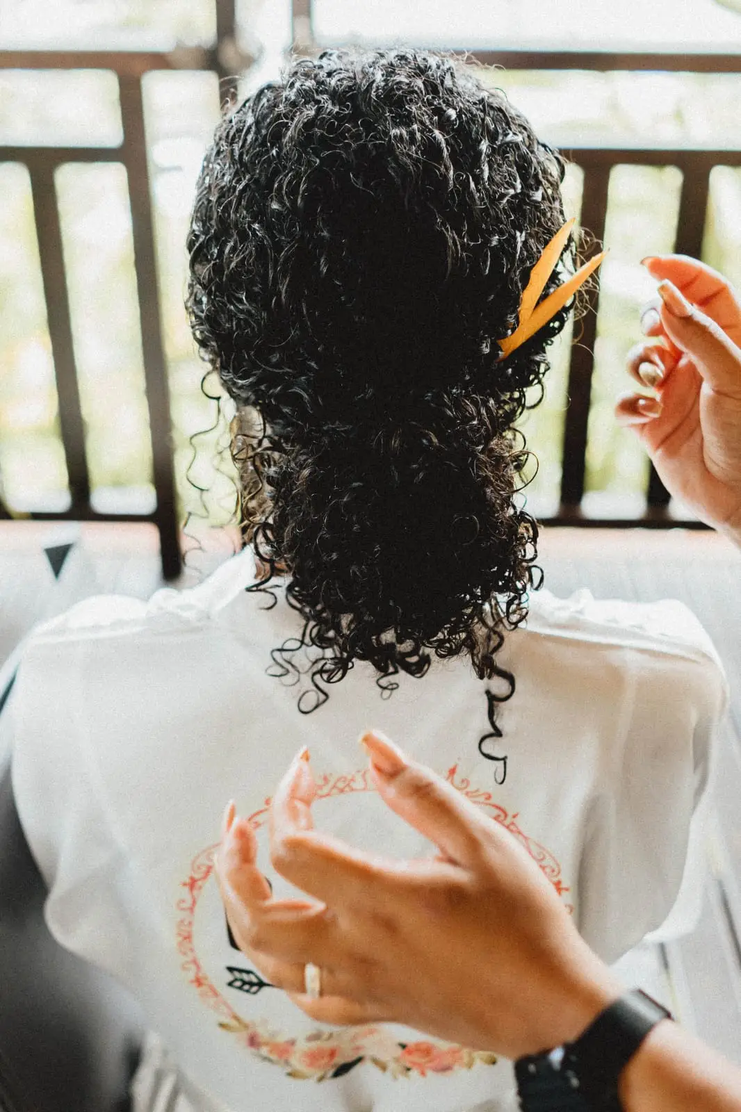 Marion est spécialisée dans la coiffure de mariage à La Réunion, avec une expertise particulière des cheveux texturés. Elle travaille chaque coiffure sur mesure et respecte la nature du cheveu, son mouvement et son identité.