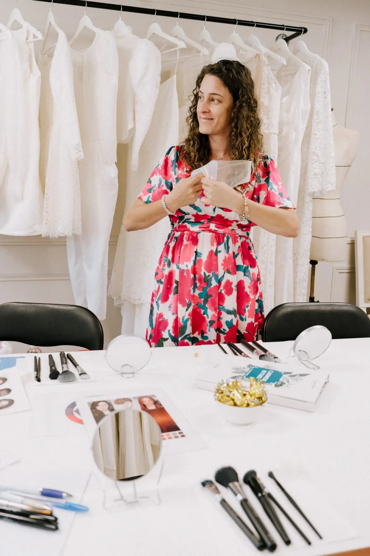 Au-delà du vêtement, elle propose des conseils en mise en beauté, coiffure et maquillage pour assurer une harmonie globale. Lorsque la mise en beauté fait partie du forfait, elle en planifie chaque étape pour que tout soit fluide et serein.
